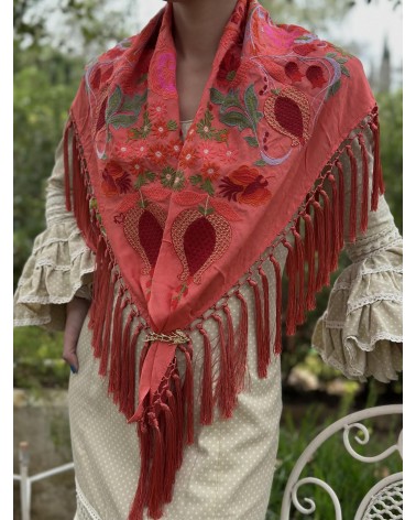 Nuevo Añadir al Carrito Eliminar de lista Lista de deseos Quick view MANTÓN GRANADA CORAL Mantón 100% seda estampado de flores bordadas en hilo de seda. Teñido y flecado a mano. Elige tu mantoncillo preferido entre nuestra amplia... Precio 150,00 €