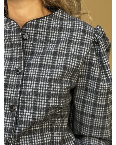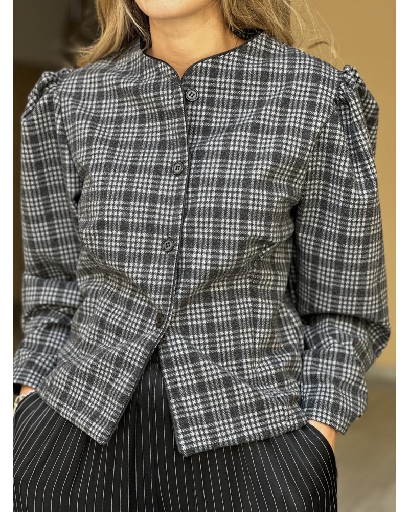 Chaqueta abotonada tipo torerita estampada cuadros.