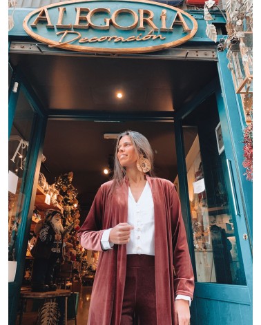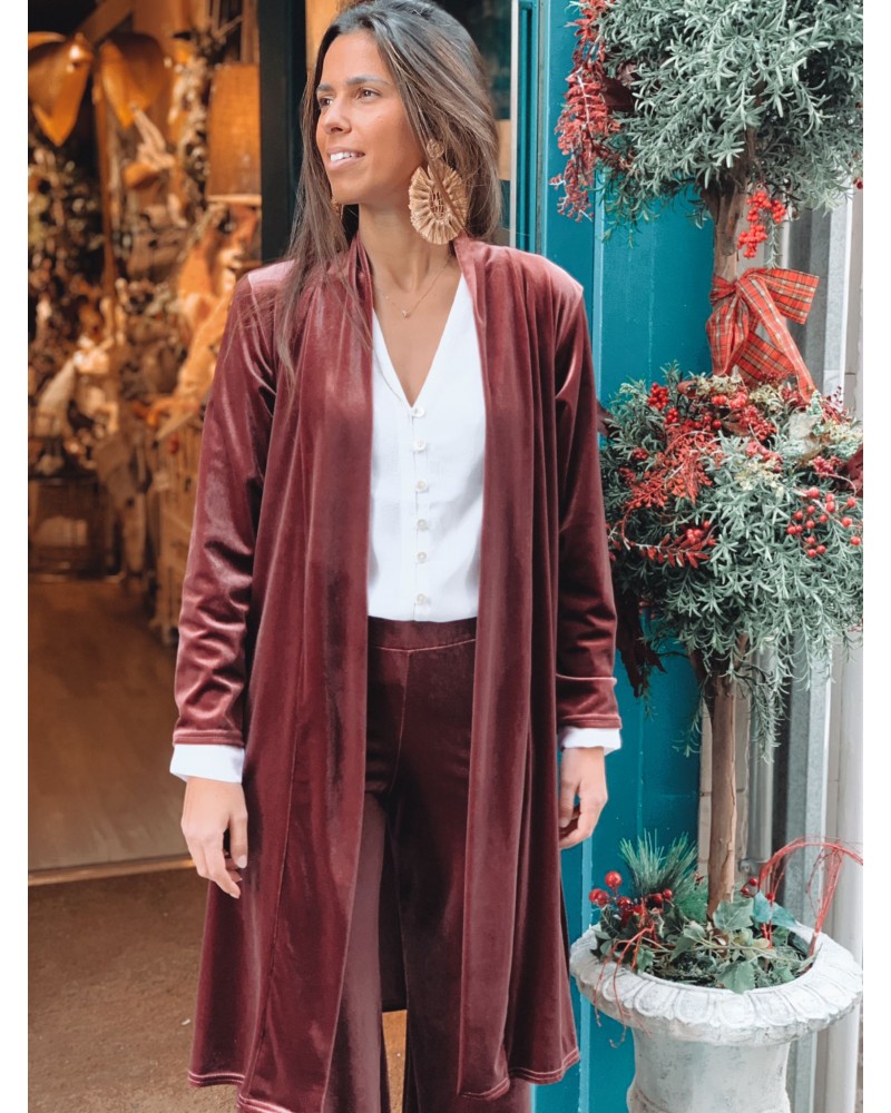 Kimono midi en terciopelo color teja.
