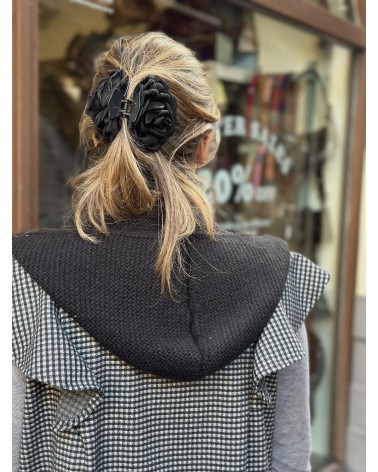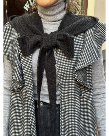 Combinado de capucha de lana con lazada larga ajustable.