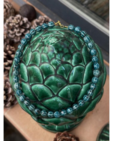 Colgante de bolitas color turquesa, con cierre cadena ajustable.