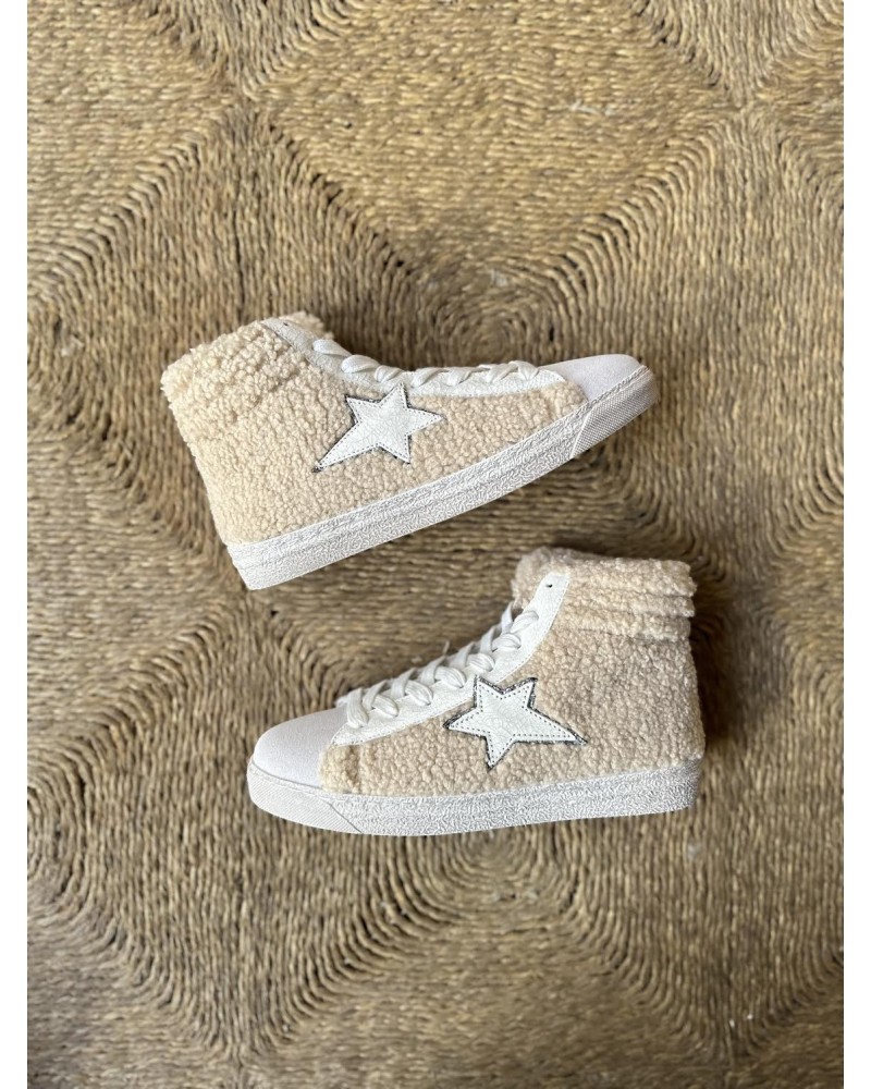 Zapatilla tipo botin cobierta borreguito detalle estrella.