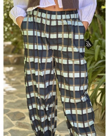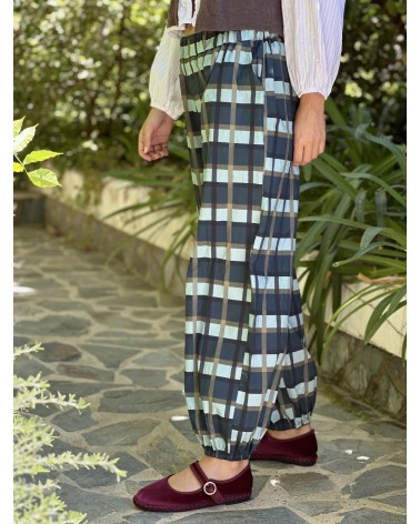 Pantalón tipo globo estampado cuadros.