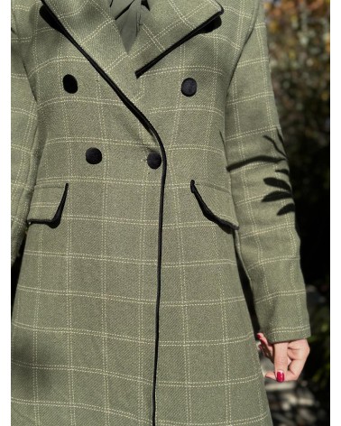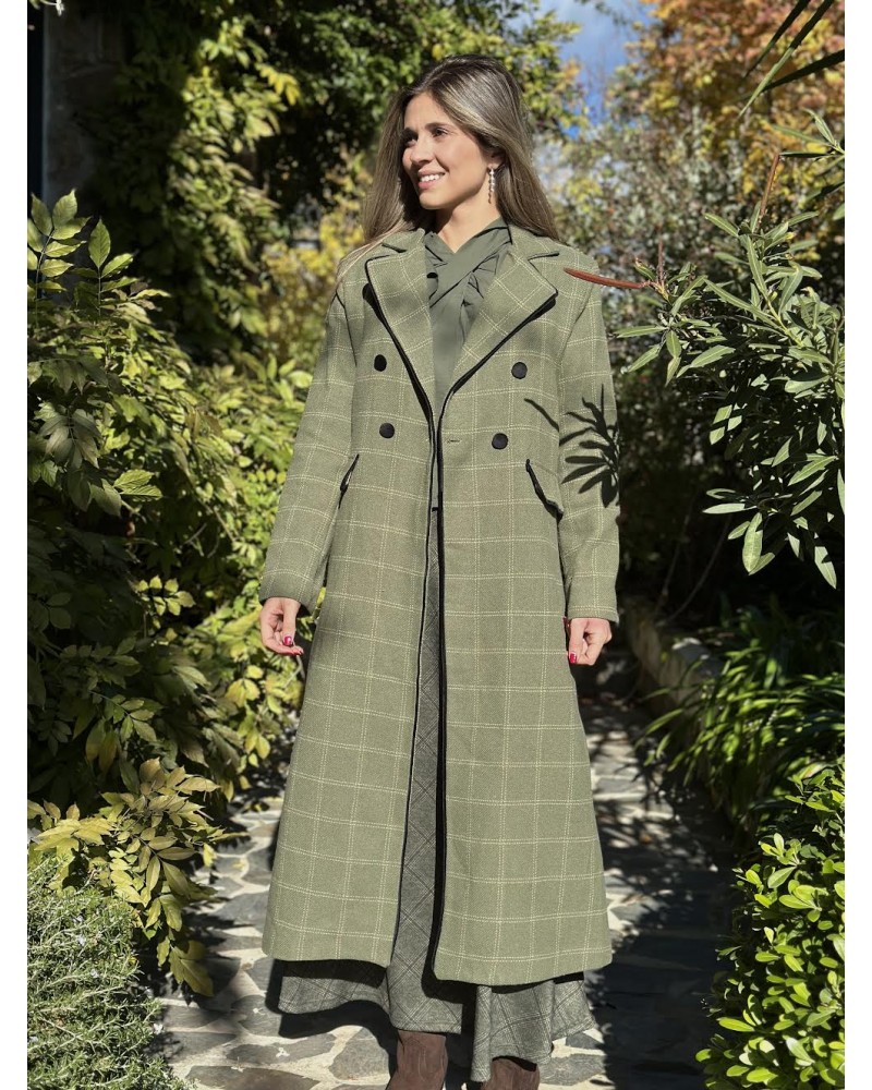 Abrigo de paño largo estampado cuadros.