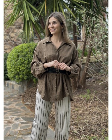 Blusa abotonada oversize estampado diplomático.