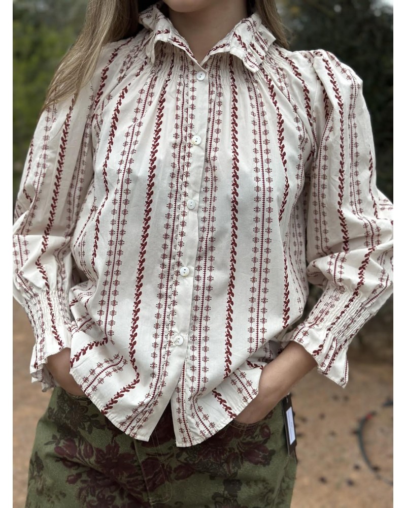Blusa abotonada estampada cuello subido.
