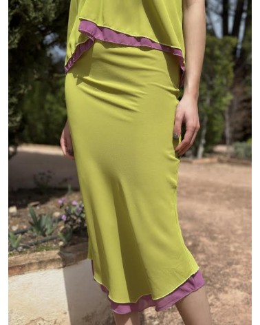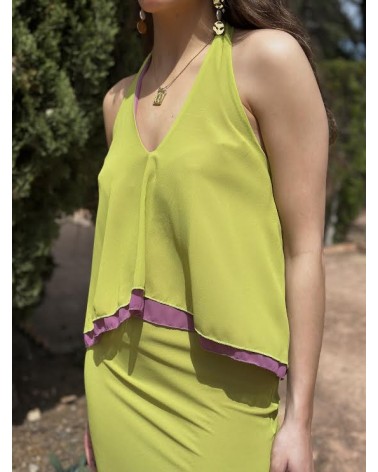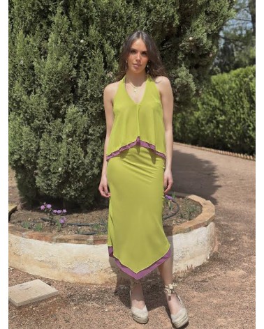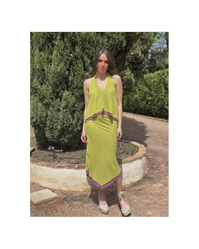 Top halter lazada. Falda cintura gomilla.