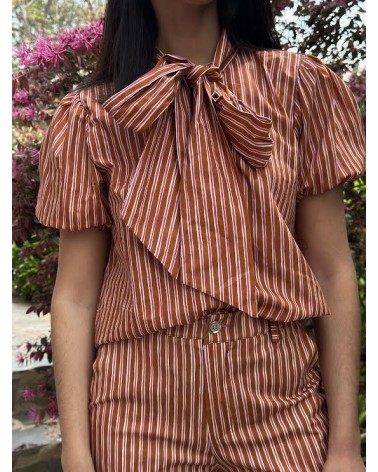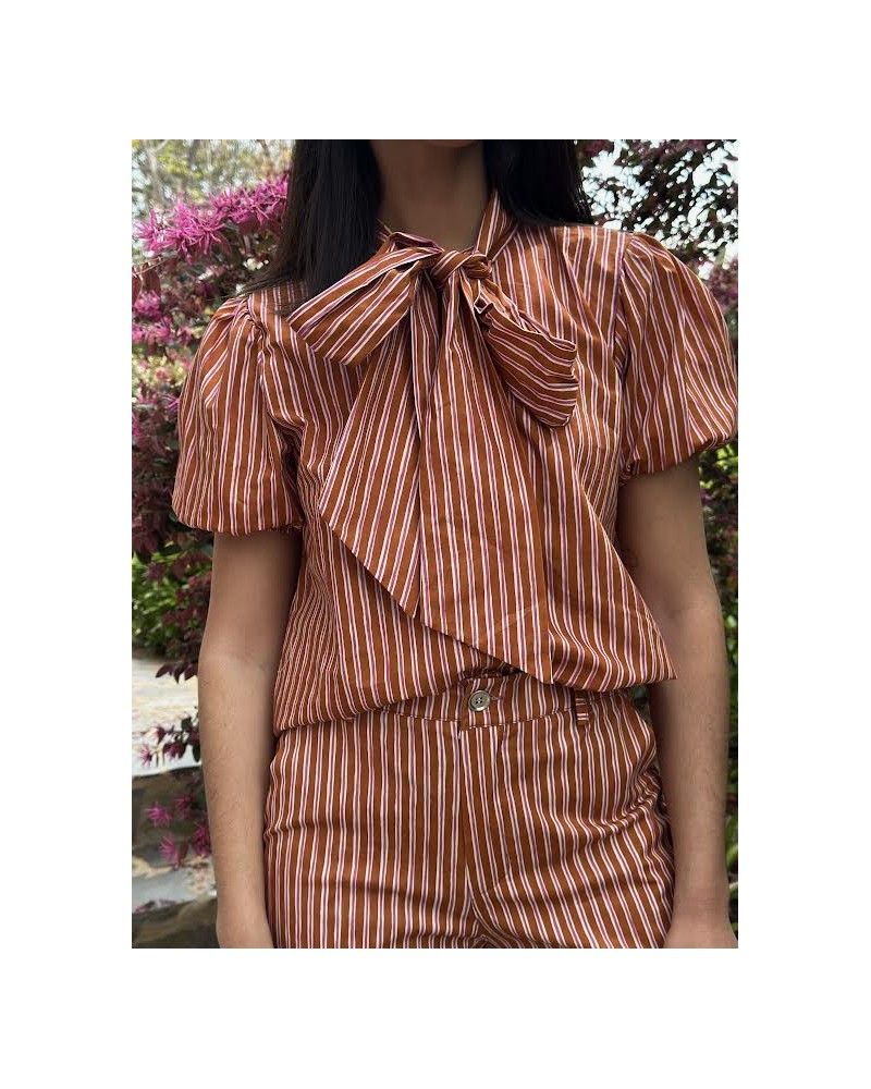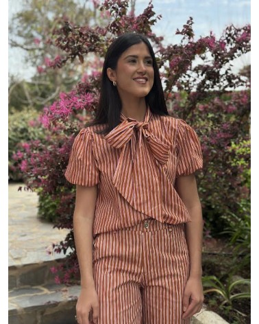 Blusa estampado rayas lazada ajustable.