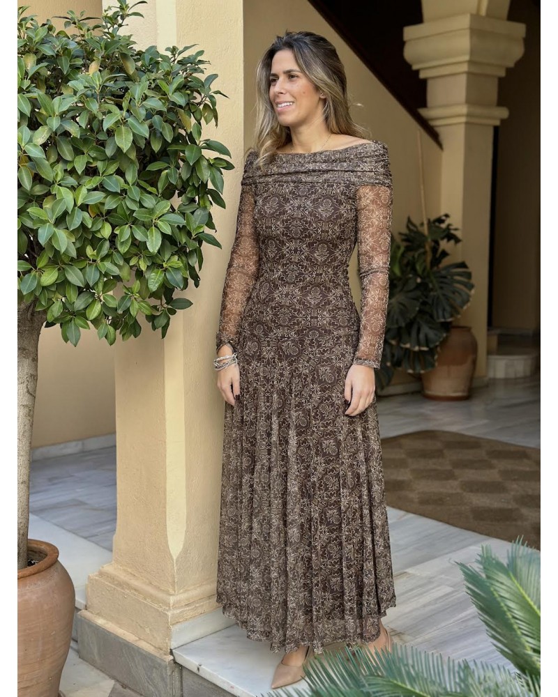 Vestido tull largo estampado.
